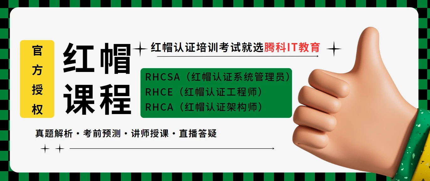如果你想了解更多关于红帽RHCSA认证考试培训等的相关信息,欢迎联系腾科官方客服:18127429208(微信同号)我们随时为您答疑解惑。