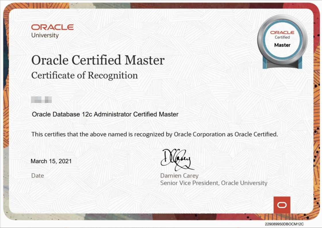 比如你考的是 OCP 11g,想要考 OCM 12c/19c,需要将 OCP 11g 证书升级为 OCP 12c/19c 版本才可获取 OCM 12c/19c。Oracle 各版本会定期取消发布。